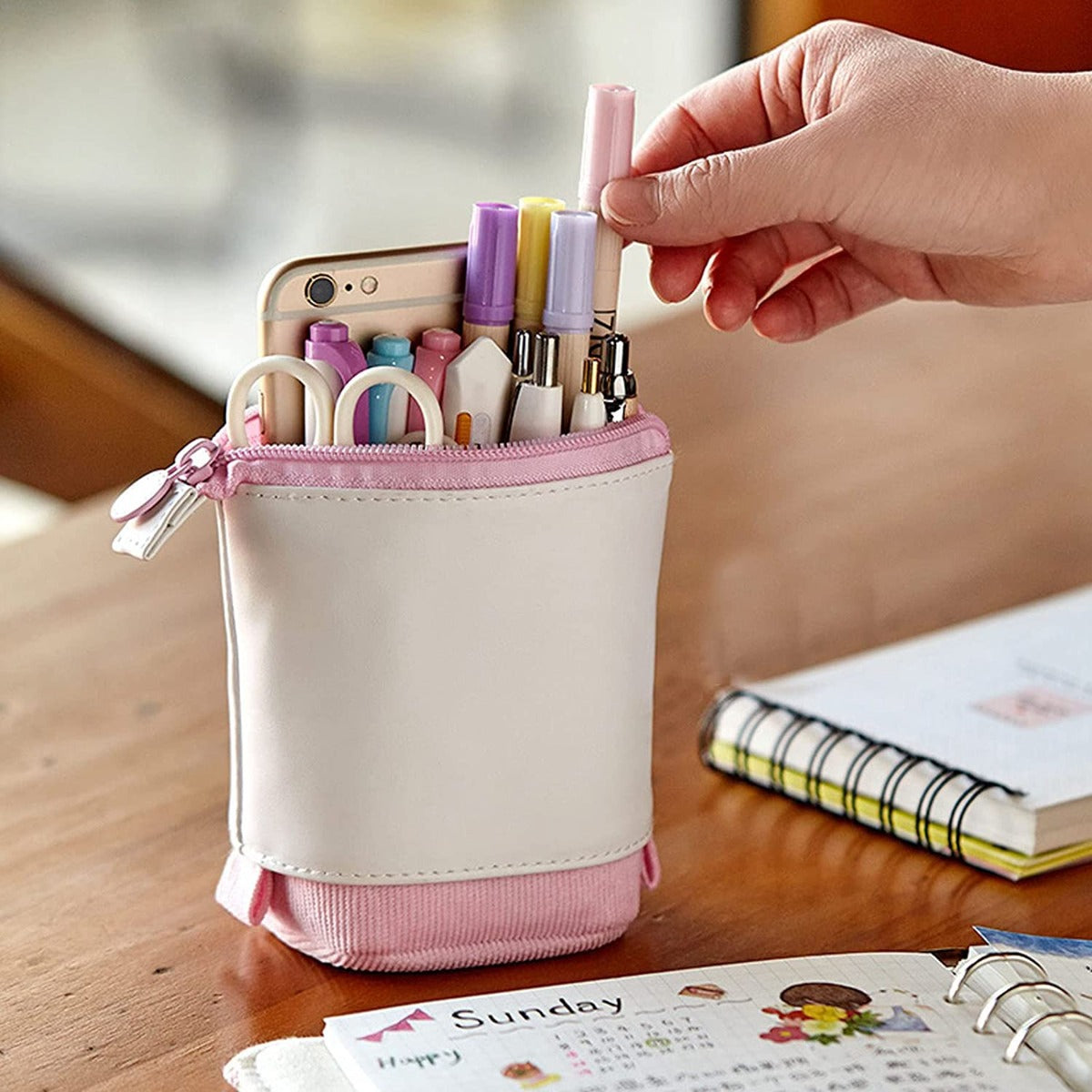 Astuccio retrattile astuccio telescopico resistente in tela astuccio pop-up in piedi astuccio con chiusura a cerniera per cancelleria cosmetica ufficio scuola