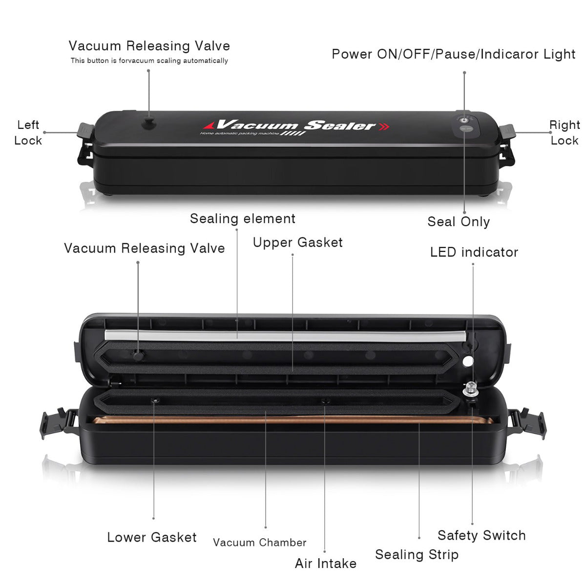 Facile da usare: facile da usare con il suo vuoto automatico e sistema di tenuta, è sufficiente premere il pulsante di vuoto e saldatura per svuotare e sigillare il sacchetto o il contenitore utilizzato automaticamente. Le spie di funzionamento indicano quando l'aspirazione e la saldatura sono complete. È inoltre possibile arrestare l'aspirapolvere in qualsiasi momento premendo il pulsante "Stop " per controllare il processo.