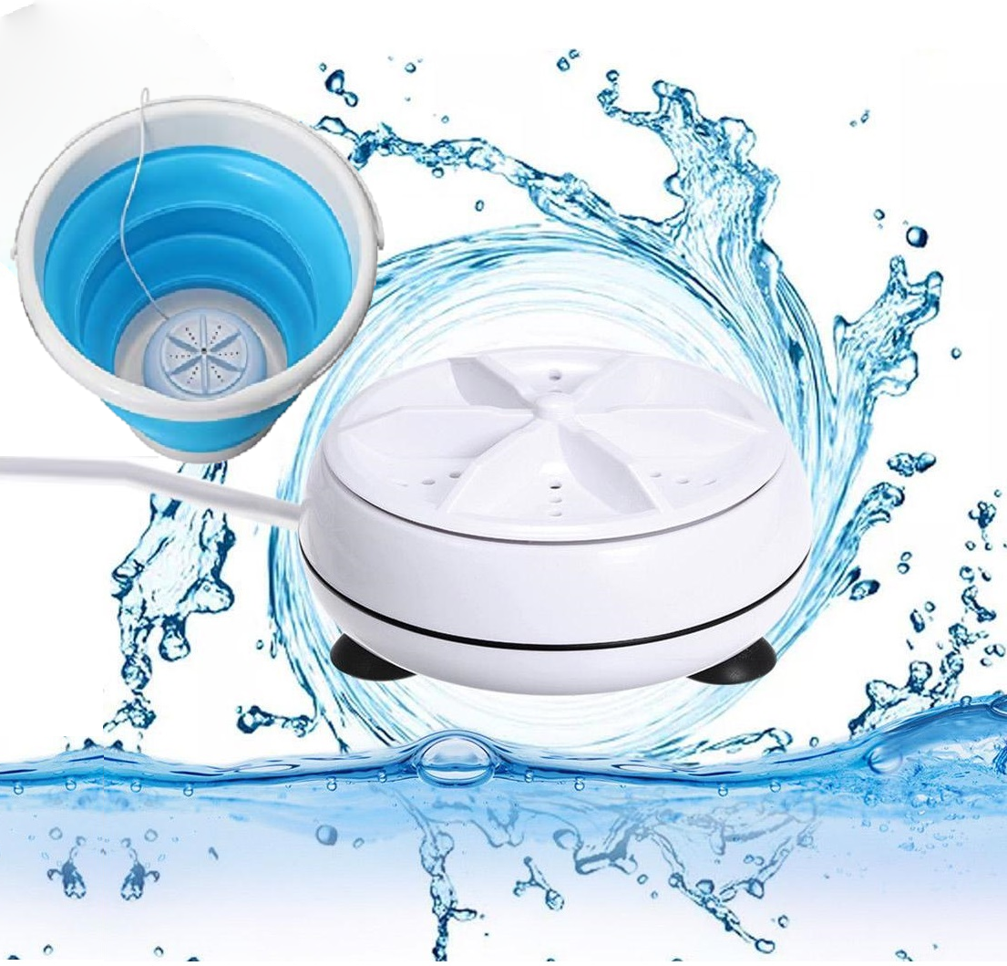 MINI WASH ULTRA è una mini lavatrice portatile che permette di lavare capi di vestiario ovunque ci si trovi. Dotata di ventose sulla parte posteriore permette di essere inserita in un secchio o in una bacinella e tramite la rotazione della turbina alternata agli ultrasuoni, crea un movimento circolare nell'acqua tale da pulire i capi inseriti. Ha un autonomia di 30 minuti, dopo i quali si spegne. Dopo 3 minuti sarà nuovamente pronta per ripartire.