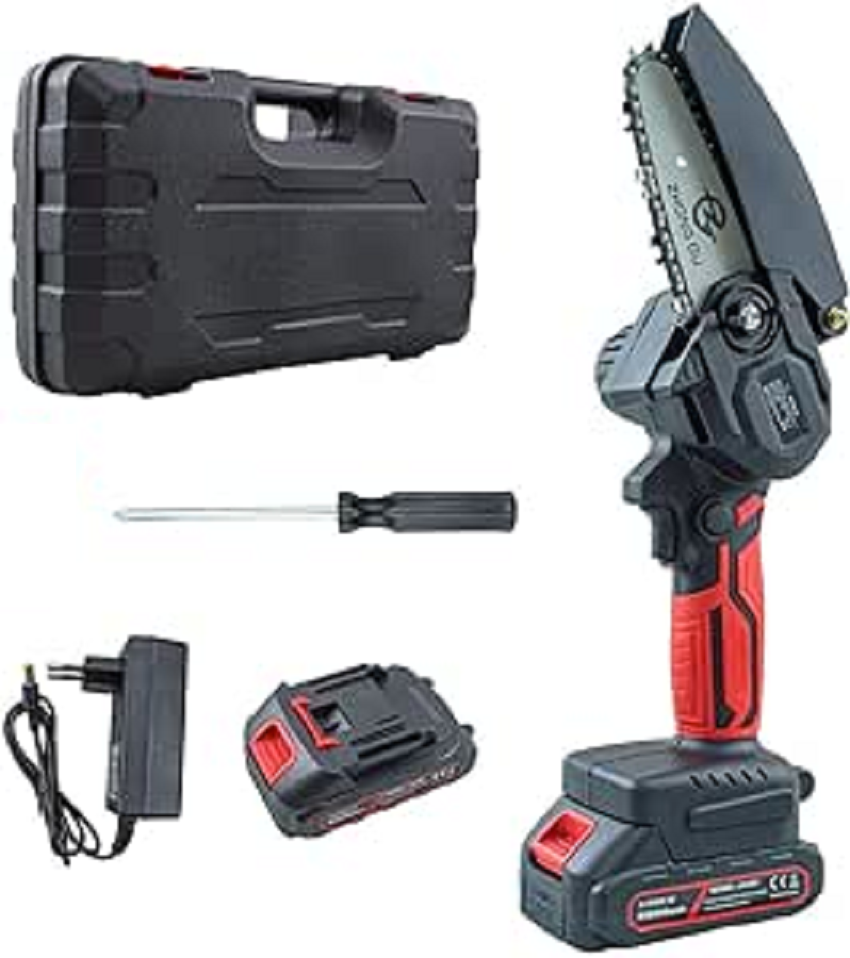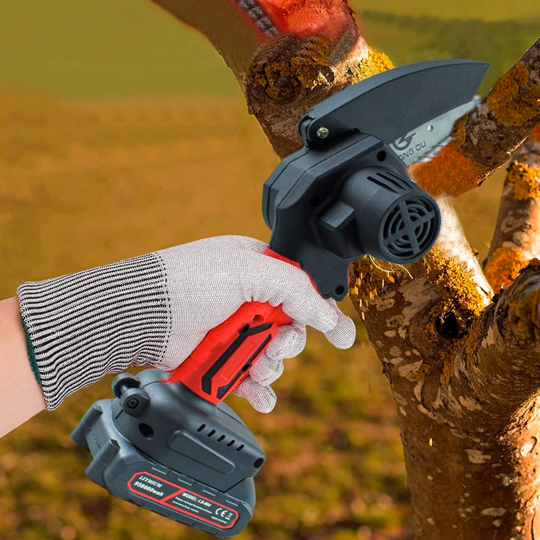 Motosega elettrica ricaricabile, leggera e portatile, batteria di lunga durata, nessun danno alla corteccia. Corpo leggero, dimensioni ridotte, può essere tenuto con una mano. Questa mini motosega ricaricabile per il taglio del legno ha un peso di soli 0,7 kg e una lunghezza totale di soli 33 cm. Motosega a batteria ricaricabile Dotato di motoriduttori ad alta velocità da 550 W ,la batteria al litio rimovibile da 48V; Ci vogliono solo 1,5 ore per caricare completamente e il tempo di utilizzo normale può raggiungere 2,5-3 ore. Questa motosega a batteria adatta una catena di guida di alta qualità che assicura un taglio regolare. L'efficienza di taglio è maggiore e più veloce.