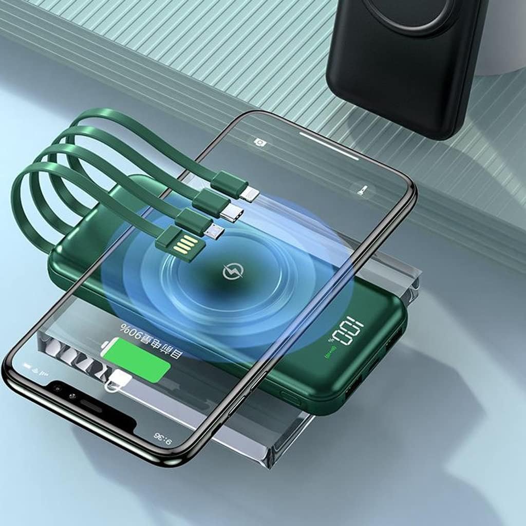 Mini Power Bank Wireless 20000mAh – Ricarica Rapida e Grande Capacità con 4 Cavi Integrati