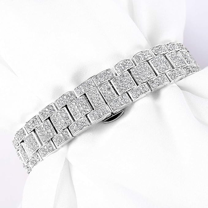 Orologio da Uomo al Quarzo Cronografo Hip Hop | Design Accattivante con Quadrante Rotondo e Diamanti Simulati (argento)