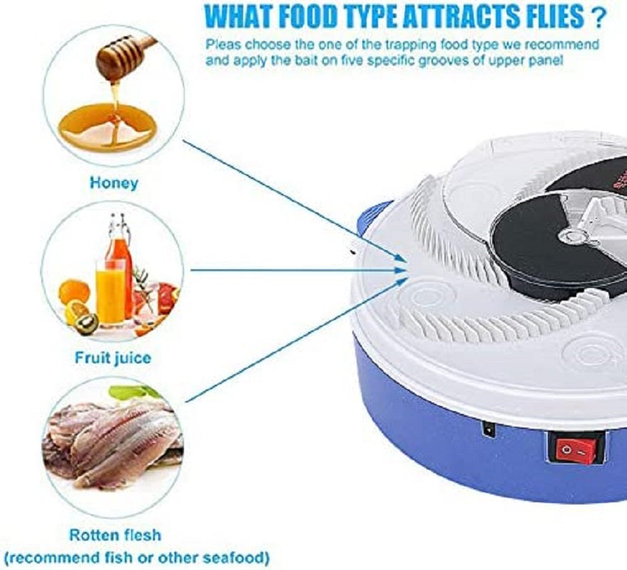 Posizionare lesca sul disco rotante per attirare le mosche nel disco rotante per lalimentazione, quindi il disco rotante spingerà le mosche nel canale centrale del fly catcher. Una volta entrati nel canale, scivoleranno verso il fondo della scatola di raccolta delle mosche e non potranno scappare.