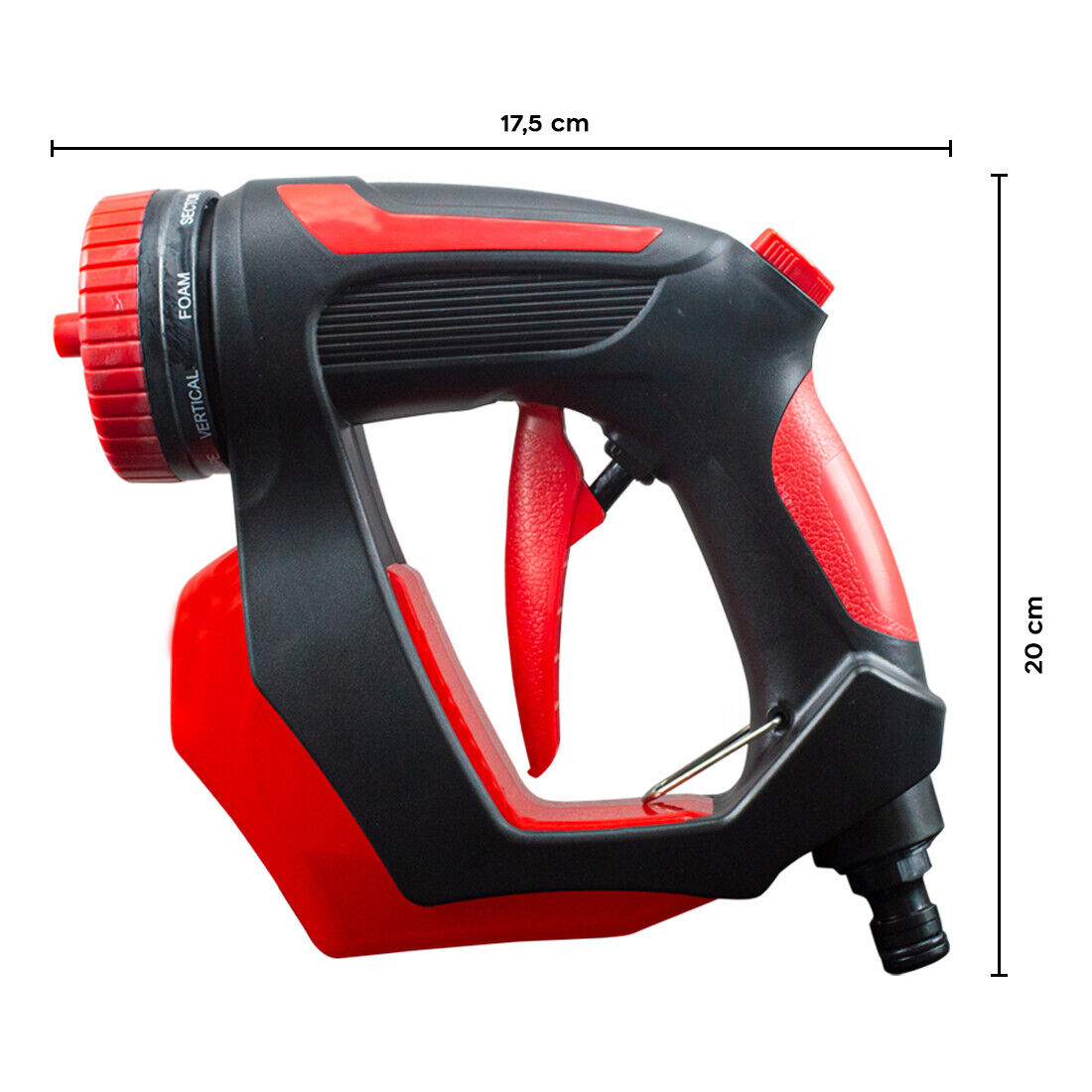L'impugnatura ergonomica e il controllo del flusso della pressione dell'acqua ti offriranno comfort e facilità d'uso, mentre le dimensioni compatte di 17,5 x 20 cm lo rendono portatile e facile da riporre. E non è tutto! Con l'ugello della pistola a tubo incluso, avrai tutto il necessario per iniziare subito a pulire.
