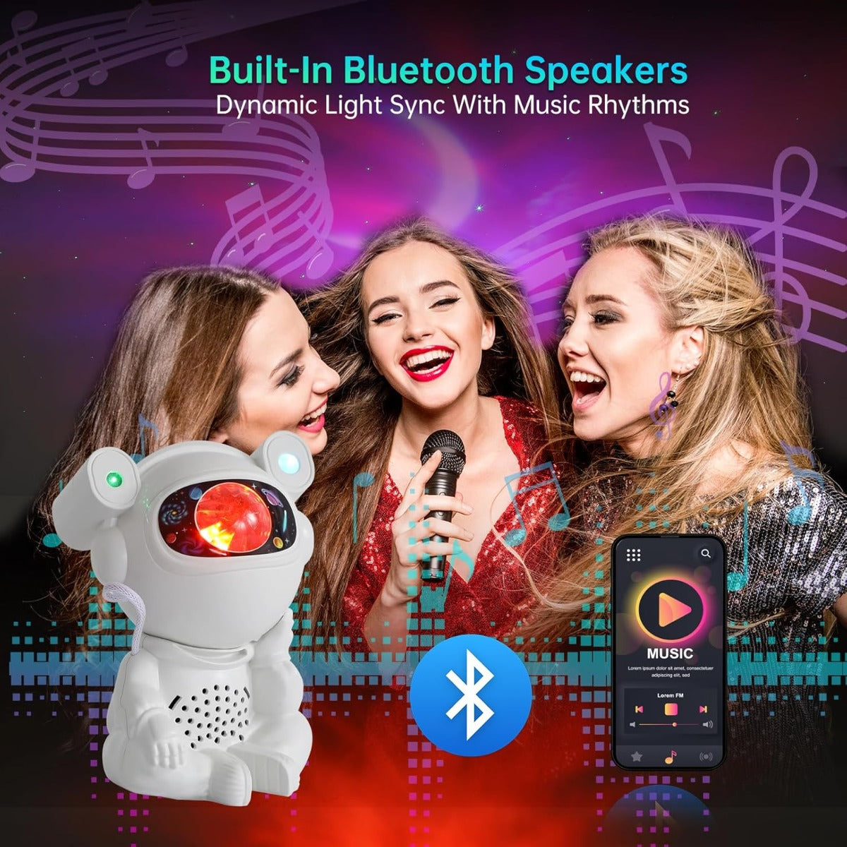 Proiettore Galassia Astronauta con Musica Bluetooth, Timer e Controllo Remoto – Lampada LED Nebulosa per Camera da Letto e Decorazione Ambiente
